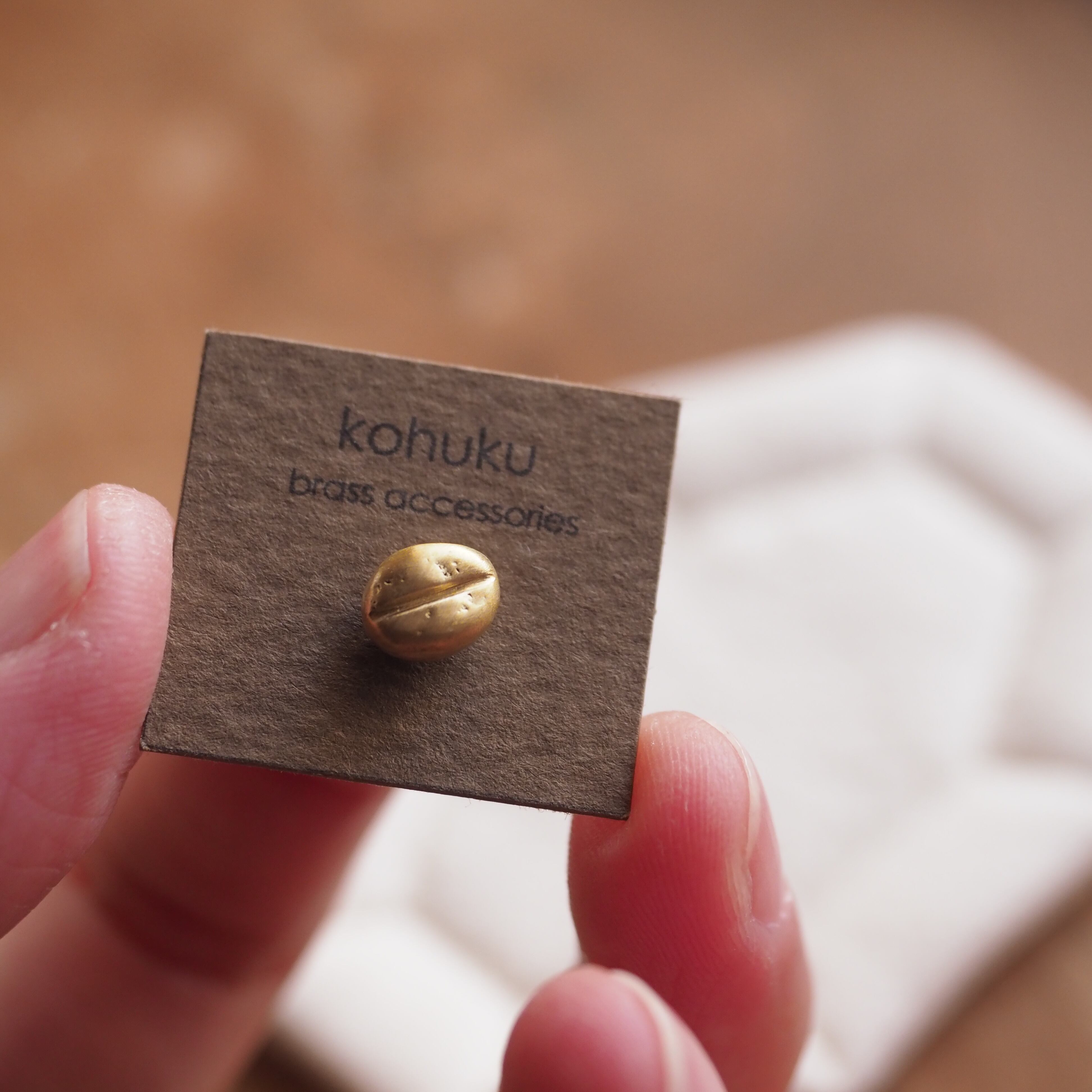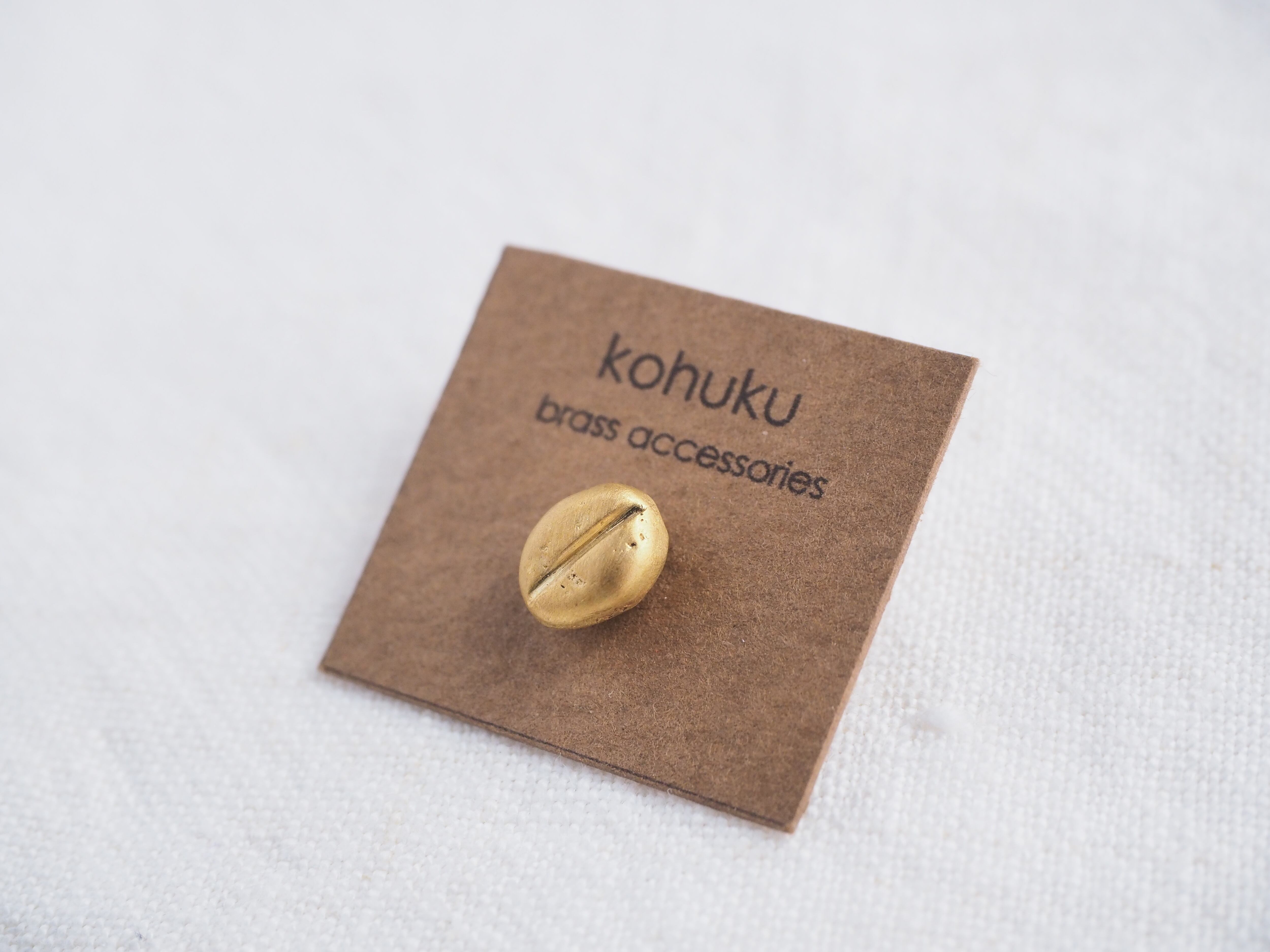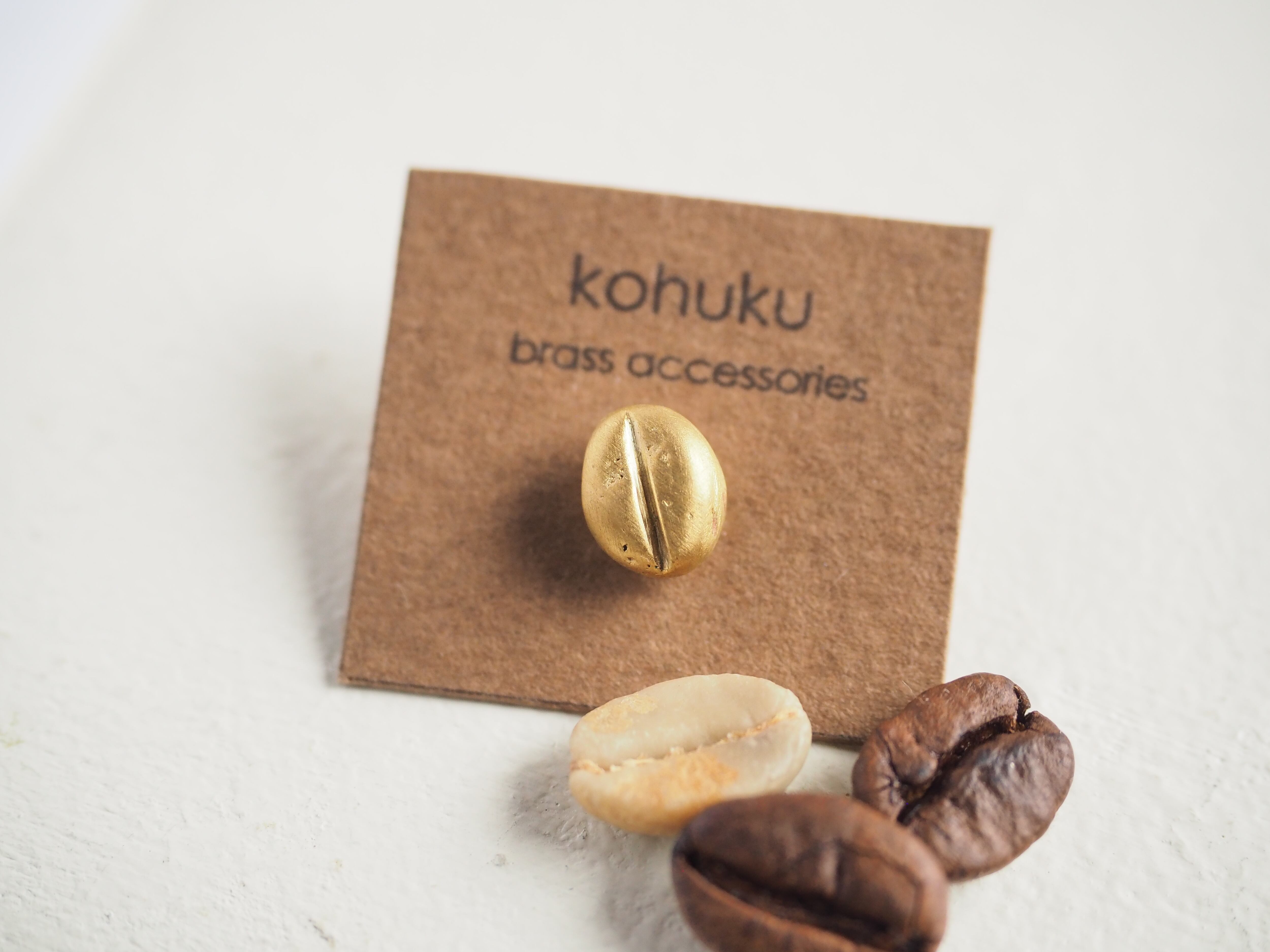 ピンズの芯(針)は真鍮製で、コーヒー豆に直接ロウ付けししっかりと固定しています。